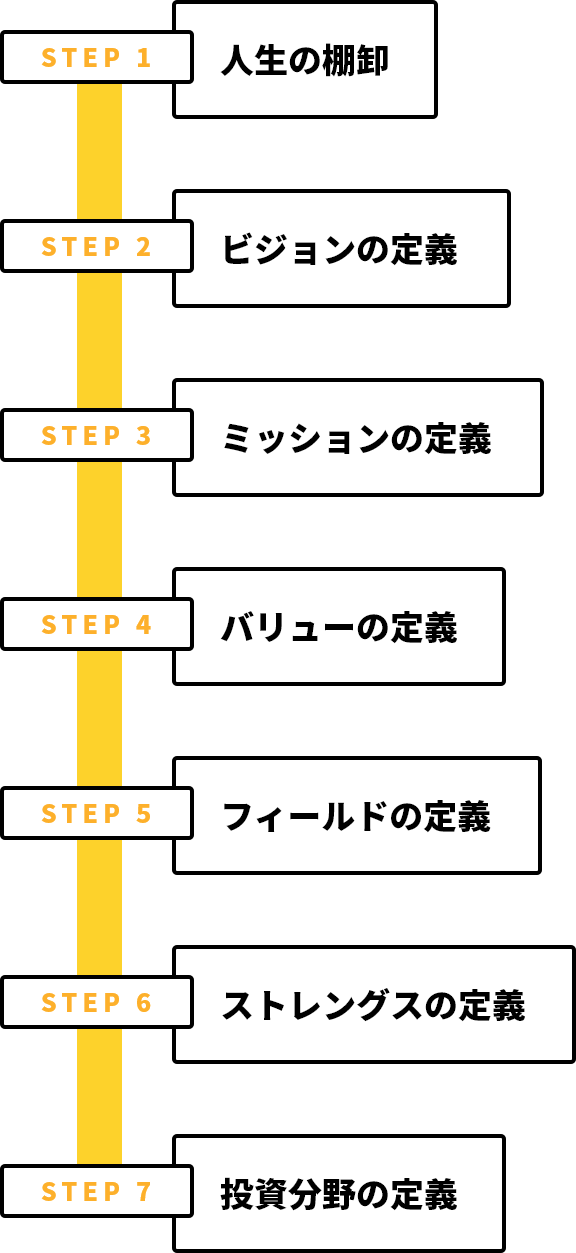 体系的な7STEPのキャリアプランニング各ステップのゴールが明確な7STEPのプログラムを通じて、迷わずにキャリアプランニングを終わらせられます。